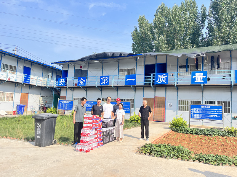 8月16日下午,公司辦公樓封頂在即,公司支部書記董事長潘軍攜公司工會相關(guān)人員親臨施工現(xiàn)場并慰問工地工作人員。