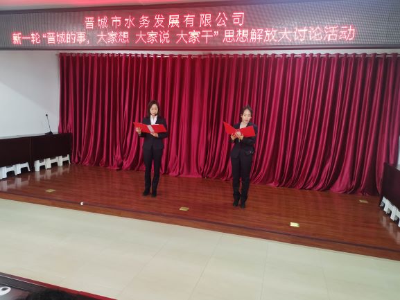 晉城市水務發(fā)展有限公司舉辦新一輪“晉城的事,大家想大家說大家干”思想解放大討論活動,共分朗誦、演講以及知識競賽三項內(nèi)容,朗誦、演講環(huán)節(jié),大家慷慨激昂;知識競賽環(huán)節(jié),大家各隊內(nèi)部團結(jié)互助、拼時間、拼智慧;難分伯仲,觀眾的掌聲、加油聲此起彼伏,充分體現(xiàn)了一種不畏挑戰(zhàn)、敢于競爭的先鋒精神。